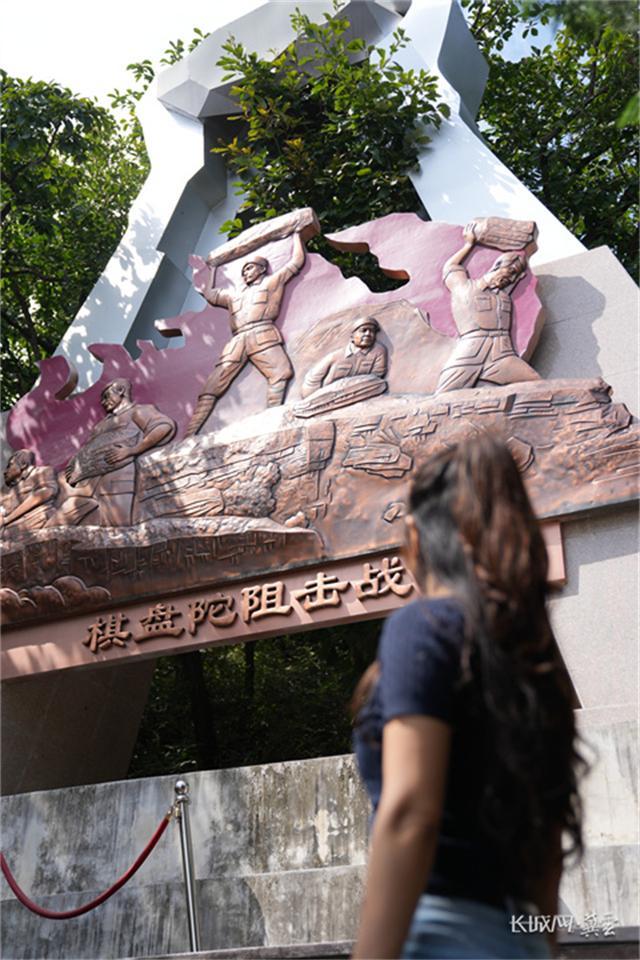 狼牙山棋盘陀阻击战雕塑。长城网·冀云客户端记者 孟维仑 摄